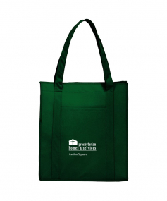 The Hercules Insulated Grocery Tote is as strong as its name suggests and offers a reusable alternative to plastic bags. Its interior is fully insulated with a heat-sealed, water-resistant lining to help protect your groceries and personal items. The Hercules features a zippered main compartment, a front open pocket measuring 9.7'' H x 6.5'' W, and double handles measuring 23''. This tote is the same was previously Leed's 2150-46, Big Grocery Insulated Non-Woven Tote.