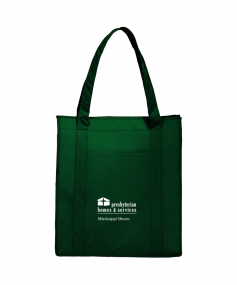 The Hercules Insulated Grocery Tote is as strong as its name suggests and offers a reusable alternative to plastic bags. Its interior is fully insulated with a heat-sealed, water-resistant lining to help protect your groceries and personal items. The Hercules features a zippered main compartment, a front open pocket measuring 9.7'' H x 6.5'' W, and double handles measuring 23''. This tote is the same was previously Leed's 2150-46, Big Grocery Insulated Non-Woven Tote.