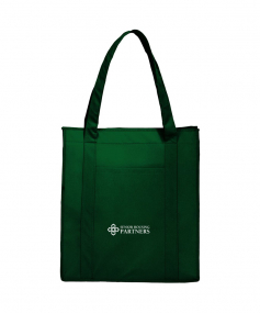 The Hercules Insulated Grocery Tote is as strong as its name suggests and offers a reusable alternative to plastic bags. Its interior is fully insulated with a heat-sealed, water-resistant lining to help protect your groceries and personal items. The Hercules features a zippered main compartment, a front open pocket measuring 9.7'' H x 6.5'' W, and double handles measuring 23''. This tote is the same was previously Leed's 2150-46, Big Grocery Insulated Non-Woven Tote.