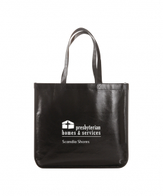 Perfect alternative to plastic bags. Open main compartment. Laminated material is water-resistant and easily wipes clean. Polypropylene non-woven reinforced handles and binding for added durability. 10" handle drop height. 14" H x 6" W x 16" L.