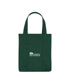 Made Of 80 Gram Non-Woven, Coated Water-Resistant Polypropylene. Great For Grocery Stores, Markets, Book Stores, Etc. 10" Gusset With Matching Covered Bottom Insert. Reusable. 20" Handles. Spot Clean/Air Dry. Complies with Prop 65. 13" W x 15" H x 10" D