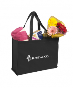 Constructed of 80 gsm non-woven polypropylene with reinforced 22" handles and 6" gusset. Complies with Prop 65. 12" H x 16" W x 6" D