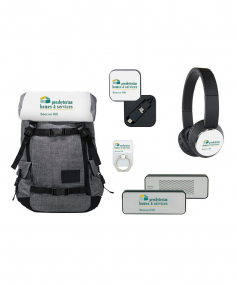 Make a statement with this bundle! Included in the kit is the cut-and-sewn Penryn Pack™ with a custom full color top and all the tech items you could want!This 5-piece gift set comes with our best sellers:Penryn Pack™Beebop wireless HeadphonesEvrybox 4400mAh Power Bank + wireless SpeakerArgonot MFI-certified Cord with Micro-USBRingr Smartphone Multi-toolAny or all of the items can be personalized at no additional charge, with no setup charges and only a 1-piece minimum. 19.5" H x 14" W x 7" D