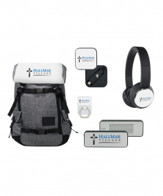 Make a statement with this bundle! Included in the kit is the cut-and-sewn Penryn Pack™ with a custom full color top and all the tech items you could want!This 5-piece gift set comes with our best sellers:Penryn Pack™Beebop wireless HeadphonesEvrybox 4400mAh Power Bank + wireless SpeakerArgonot MFI-certified Cord with Micro-USBRingr Smartphone Multi-toolAny or all of the items can be personalized at no additional charge, with no setup charges and only a 1-piece minimum.  19.5" H x 14" W x 7" D